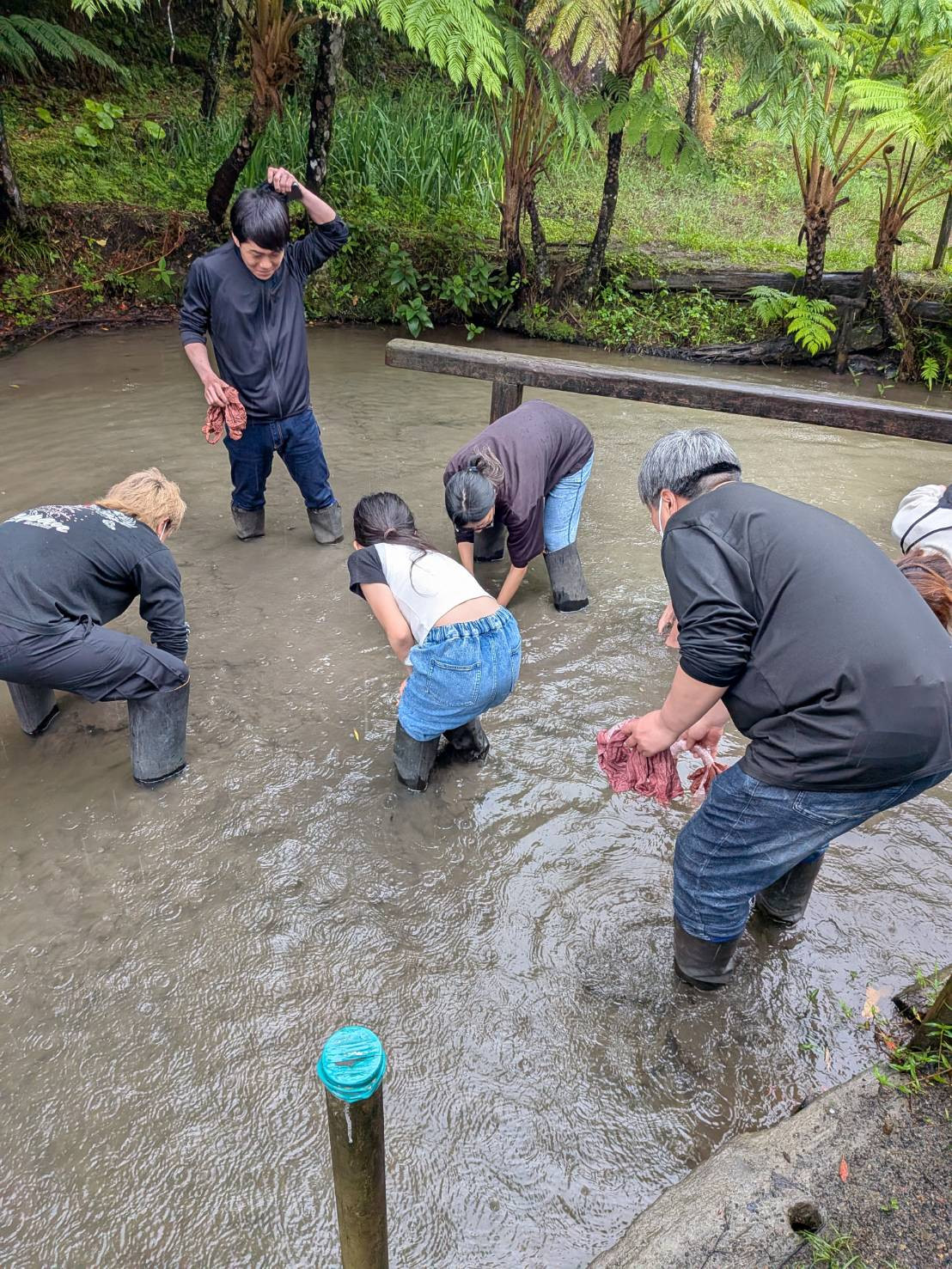 めっちゃ雨降ってたのに、泥の中に入って染めるときだけ雨がやんでくれたよ~~😊